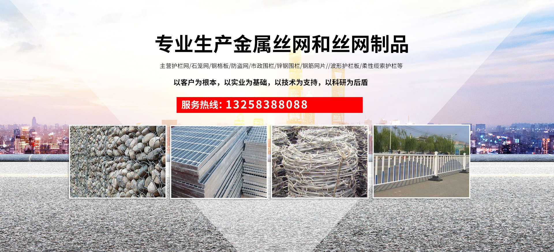 成都宏旭金屬絲網制造有限公司主營護欄網系列、石籠網系列、鋼格板、防盜網、市政圍欄、鋅鋼圍欄、鋼筋網片、聲屏障系列、波形護欄板、柔性纜索護欄、SNS邊坡防護網等其他絲網類產品。特殊規(guī)格可加工定做,也可根據客戶來圖來樣定做。自創(chuàng)業(yè)以來,公司一直堅持市場為導向,以客戶為根本,以實業(yè)為基礎,以技術為支持,以科研為后盾,集科研、生產、經營為一體,不斷研制開發(fā)新產品,開拓市場,走綜合發(fā)展之路。多年來,公司憑借過硬的質量,良好的信譽、優(yōu)質的服務、合理的價格,贏得了市場和商家的一致好評。